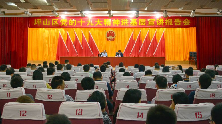 会议要求,坪山各街道、各部门要严格按照相关要求,组织做好党的十九大精神宣讲工作,切实加强组织领导,坚持深入基层一线,突出宣讲实效,做好宣传总结工作,切实推动十九大精神进机关、进企业、进校园、进社区。