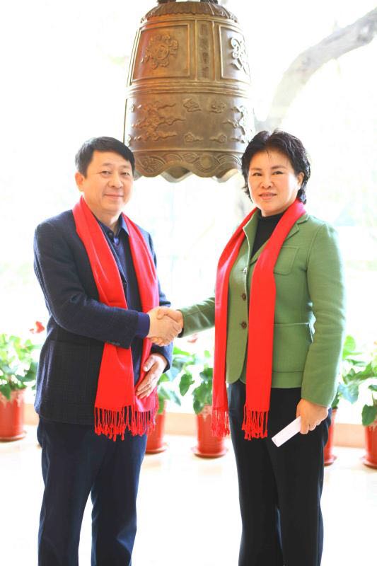 伊春市委书记高环(右)与四宝生物董事长张凤春现场合影。
