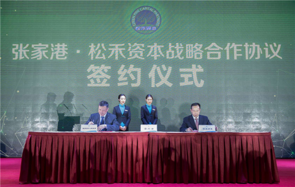 会议现场,张家港人民政府与深圳市松禾资本管理有限公司签署战略合作协议,双方共同推进张家港在战略性新兴产业上的发展。
