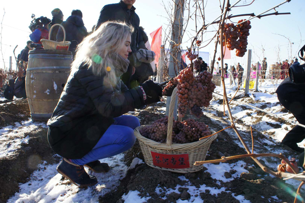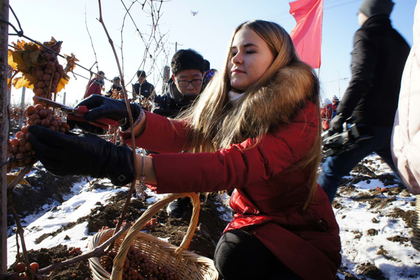 【香港商報網訊】 日前,黑龍江省東寧市萬畝冰葡萄進入集中采摘釀造期,只有氣溫在零下8℃以下穩定48小時以上才能采收的冰葡萄以及冰酒品嘗活動,吸引了大量中外遊客前來觀賞參與。