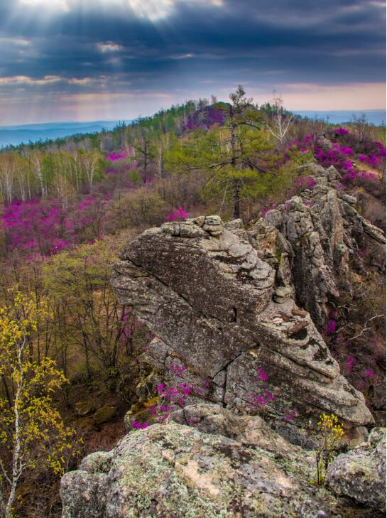 森林作为地球上陆地生态的主体,人类的祖先曾在这绿色的怀抱中度过漫长的岁月。大兴安岭松岭区境内的飞龙山每年五月盛开的杜鹃花吸引了无数摄影爱好者来此拍摄,正是他们不经意间的采风,才发现了目前大兴安岭地区最大的古源石林岩画群。