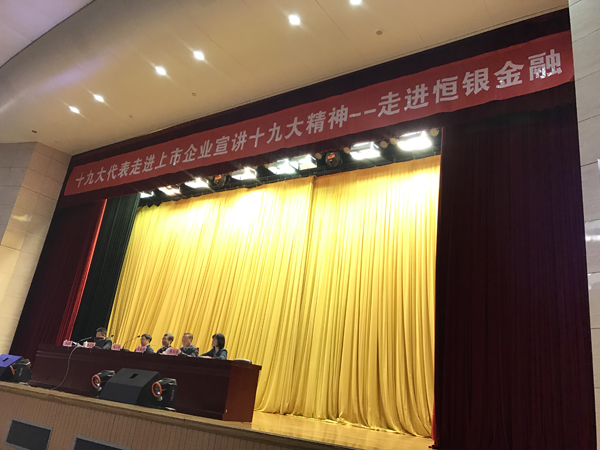 此场报告会邀请了党的十九大代表、步步高集团党委书记、总裁陈志强和党的十九大代表、中国建设银行天津南开王顶堤联合党支部书记、王顶堤支行行长张丽丽作十九大精神宣讲报告。十九大代表与恒银金融党委委员、党员、入党积极分子、职工代表等近500人分享了参会经历、学习十九大精神的感悟,以及对新时代的期待,鼓励广大干部职工为全面建设社会主义现代化强国而不懈奋斗。很多听众边听边记,学习气氛浓烈。