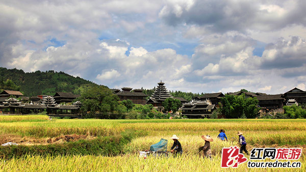 守着家门口的风景,村民们吃上了旅游饭。图为湖南通道,侗寨秋歌。何洪伟 摄