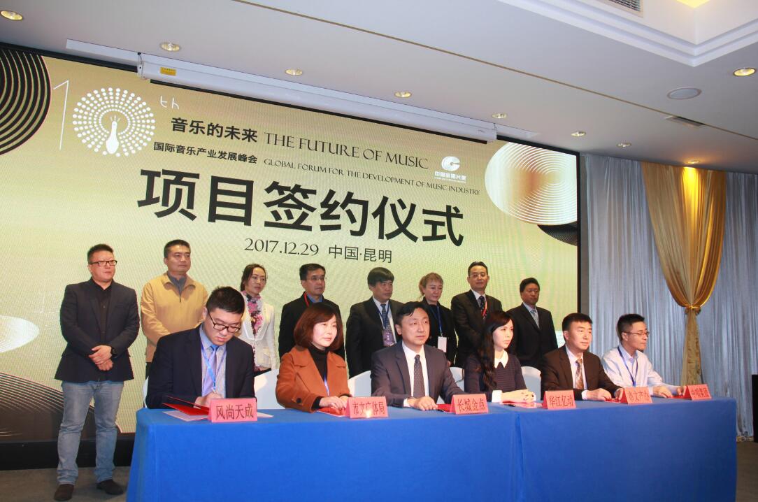 29日峰会闭幕式上,昆明市滇中新区与中国唱片总公司、北京长城金点物联网科技股份有限公司、北京风尚大成文化有限公司等企业集中签署了十项框架协议。此次签约项目中,文化艺术类项目共4项,占签约项目总数的40%,包含文化峰会、音乐节、民族音乐博物馆及音乐小镇等业态。这些项目的落地建设,将进一步整合昆明乃至云南境内自然、文化、民族、艺术等方面的丰富资源,吸引艺术家参与艺术活动与创作,打造音乐、民族、生态、资本、科技的循环链条,树立昆明音乐都会的璀璨形象。