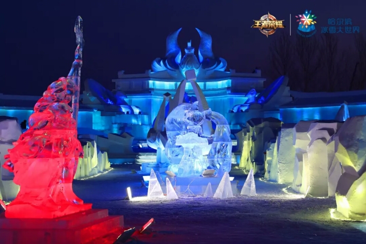 第十九届哈尔滨冰雪大世界园区内修建的世界首个《王者荣耀》冰雪主题景观已于十二月初造雪采冰动工,在近15000平米的区域内,《王者荣耀》全新版地图的所有细节被完美复制。除了游戏内的10个英雄外,现场还将高精度还原红、蓝两个阵营的基地、水晶和防御塔,并雕刻5个长城守卫军形象,修建上路、中路、下路三条路线及护城河,还原王者大陆,演绎新的传奇。