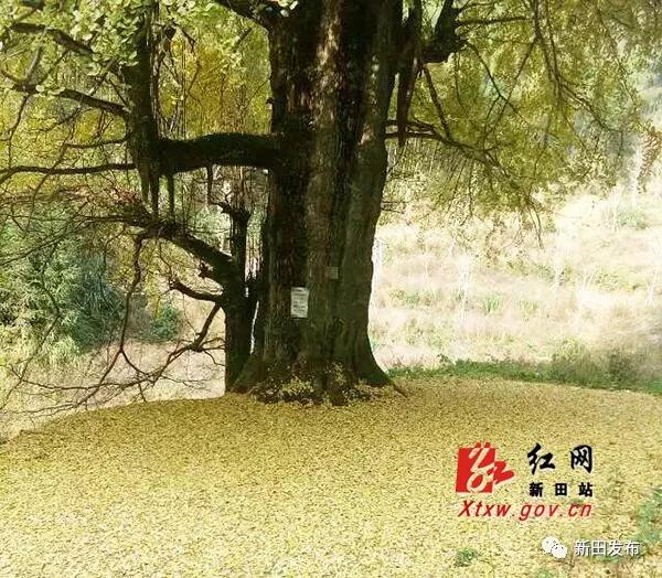 新田县千马坪村古银杏,树高63米,树干胸径约4米,树围约11.9米,需7人双手相牵方能合抱,树冠覆盖面积达480余平方米。主干下部中空,西侧有一两米多高的门洞,洞内摆放一张农家饭桌仍有余。曾有顽童放牧时将牛赶入其中,用砖石把门洞堵上半截,自顾自去玩,可见树干的粗壮。