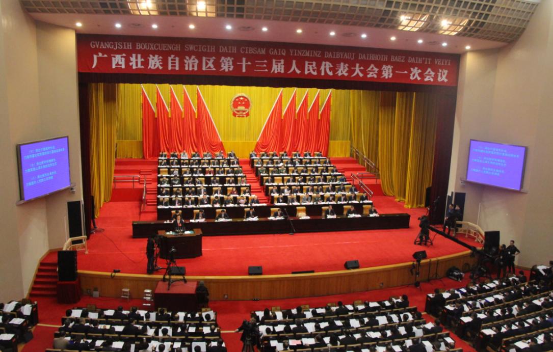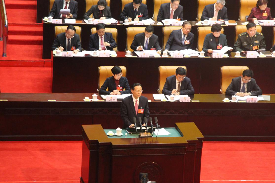 广西壮族自治区政府主席陈武向大会作政府工作报告。