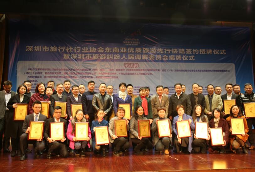 【香港商报网讯】记者苏伟摄影报道:2月6日,深圳市旅行社行业协会东南亚优质旅游先行快赔签约授牌暨深圳市旅游纠纷人民调解委员会揭牌仪式在深圳市博物馆成功举办。