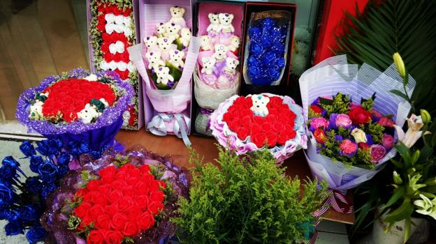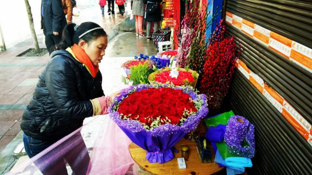 “今年情人节正值春节前一天,因此气氛并不浓厚,今年情人节订花的人比去年少,我们的销售量减少了大概30%左右。截止2月13日已有三十个左右的鲜花订单,主要都是以玫瑰花为主。”花店老板何女士介绍说。