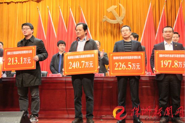 表彰会上,34家企业代表、11家金融机构代表、4名招商引资中介人上台领奖。其中株洲钻石切削刀具股份有限公司、株洲时代新材料科技股份有限公司、湖南立方新能源科技有限责任公司分别获得自主创新促进产业转型升级发展政策支持达200余万元。