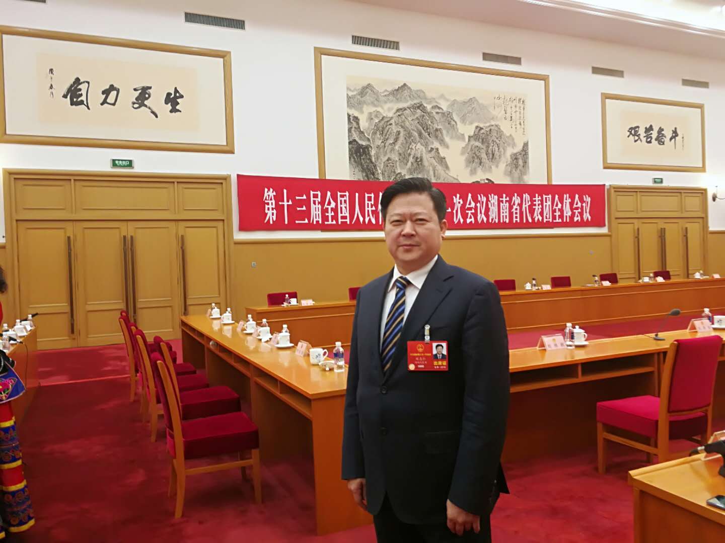全国人大代表、郴州市市长刘志仁在接受记者采访时留影。