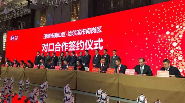 据介绍,此次深圳市南山区·哈尔滨市南岗区合作签约暨区域协同发展论坛活动在南岗区召开,是深哈合作中唯一一个在哈尔滨召开的签约大会,这样的形式是深哈合作工作开展以来的一次重大突破。变“走出去”为“请进来”,请进来的企业实地考察调研,亲身感受南岗的发展环境,企业与企业面对面沟通交流,更好地寻找合作点。通过筛选南岗区的资源,提供给南山区和深圳市的企业,政府作为“中间人”,打通政、校、企、银、金、介、媒等不同层面的“信息孤岛”。充分发挥该区科技优势,精选30个项目进行路演展示,吸引深圳创投机构参与活动,项目融资方与资金投资方零距离接触,达成了多项合作意向。深圳市南山区的政府和企业还深入到哈尔滨工业大学、哈尔滨工程大学和南岗区博物馆参观。