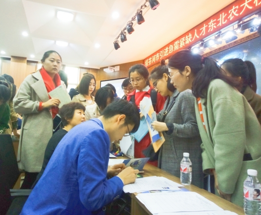 【香港商报网讯】绥芬河市委、市政府紧紧围绕“聚天下英才而用之”的重要要求,着眼推进“人才强市”战略。3月28日,绥芬河市引进急需紧缺人才专场招聘会在哈尔滨市东北农业大学举行。牡丹江市委常委、绥芬河市委书记王兴柱,绥芬河市委常委、组织部长李兴国,东北农业大学党委书记孙登林,东北农业大学党委副书记、校长包军,东北农业大学党委副书记陈延良出席本次招聘会。