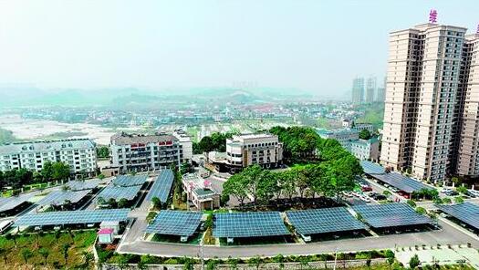 湖北日报讯 宜昌市点军区日照充足,年均日照1700多小时,但地形多山,缺乏大面积推广光伏发电的荒坡。该区利用一切可利用的条件,将学校、机关事业单位等公共建筑顶层开发建成光伏电站,收入悉数用于扶贫。图为点军区政府大院便民停车场,顶棚全系光伏面板,总面积4800平方米,总装机600千瓦,每月发电5.7万多度,所产电能并入国家电网,收益分配给区内6个贫困村。