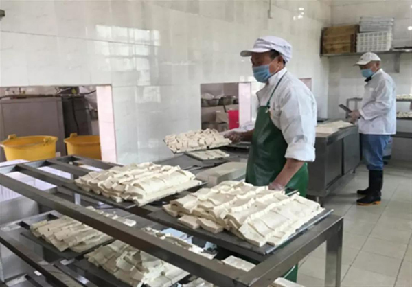 走进湖南省“五月豆香”食品有限公司的生产车间,标准化的厂房、半自动化的生产线,身着工作服的工人正在规范生产,忙而有序……这里完全颠覆了人们之前对豆腐作坊的印象。只见经过浸泡、磨浆的小黄豆一条龙似的变成了水汪汪的豆腐,白白嫩嫩,滑滑颤颤,再经过切块、油炸、真空打包等工序,包装精美的石羊醋水豆腐就这样面世了。