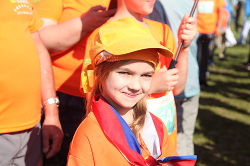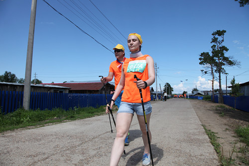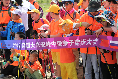在塔河县开库康乡参加中俄亲子徒步活动的俄罗斯小女孩