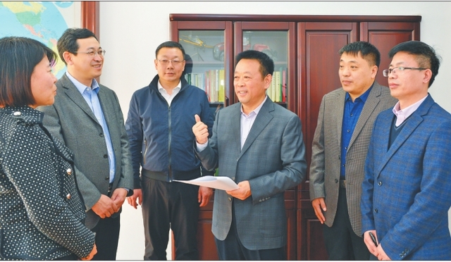 黑龍江省全國人大代表、省農委主任王金會(中)向同事們傳達兩會精神,分享參加兩會的感受。邵國良攝