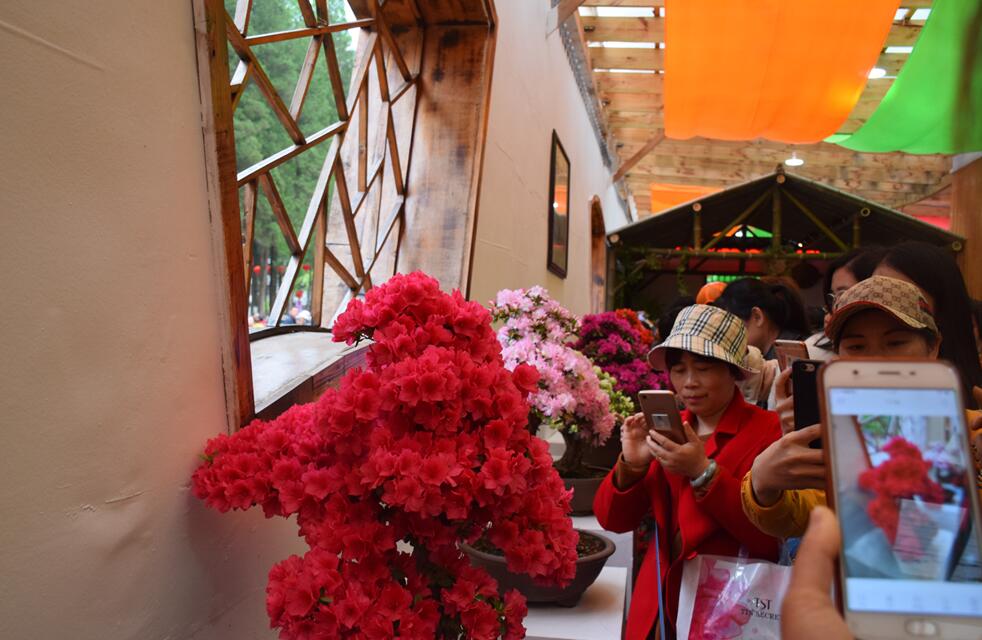 各色杜鹃花开放热烈,各种杜鹃花盆景和各式园林小品,还有来自日本、美国、比利时、德国等国家的杜鹃花,争奇斗艳,让游客大饱眼福。