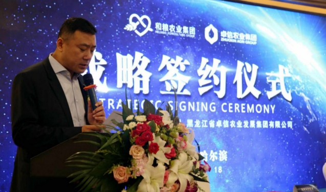 卓信集团副总裁、卓信农业集团总裁张守荣先生向大家表达了卓信农业集团对本次合作的高度重视,称集团非常看重和粮集团农产品的研发能力与品牌。张守荣表示,双方友好合作必将实现产业链互补、战略目标共赢。通过双方共赢与发展的合作模式,提升战略协同层次和水平,提升创新能力,实现战略发展中新的跨越。