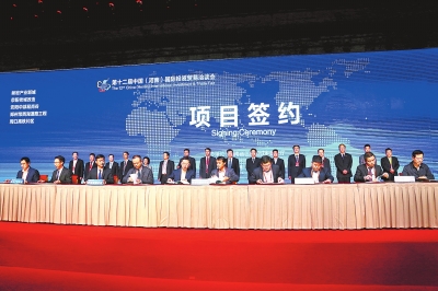 新密市政府和华夏幸福基金公司、荥阳市政府和雅居乐控股集团、安阳市文峰区政府和中部易商谷园区、郑州市管城区政府和一德集团、周口市发改委和中冶天工集团、夏邑县政府和鞍钢集团、光山县水产局和北京碧水源科技公司、宝丰县父城基建公司和太平洋建设集团等现场签约。据了解,本次投融资洽谈会签约项目共98个、总投资1454亿元。(郭延)