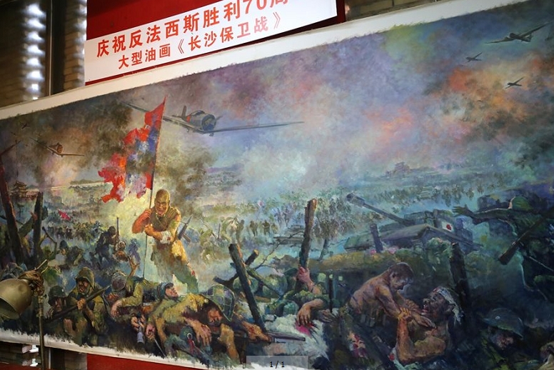 油画《长沙保卫战》长7米、高2.15米,画中描绘了近300个人物形象,体现了抗战中的民族精神。