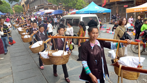 据了解,“谷雨节”就犹如侗家男女青年的“情人节”,活动期间,肇兴侗寨开展了“抬官人”等传统民俗活动。村民用轿子抬着身穿节日盛装的姑娘或小孩(俗称“官人”)巡游,喜迎谷雨到来,以此祈福风调雨顺、五谷丰登。 “抬官人”是肇兴侗寨最为隆重的民俗活动之一,已传承300多年。每年谷雨,肇兴侗寨都要开展丰富多彩的民俗活动进行欢庆,有抬官人、吃乌米饭、抹花脸等等,活动吸引众多国内外游客前来参加体验。