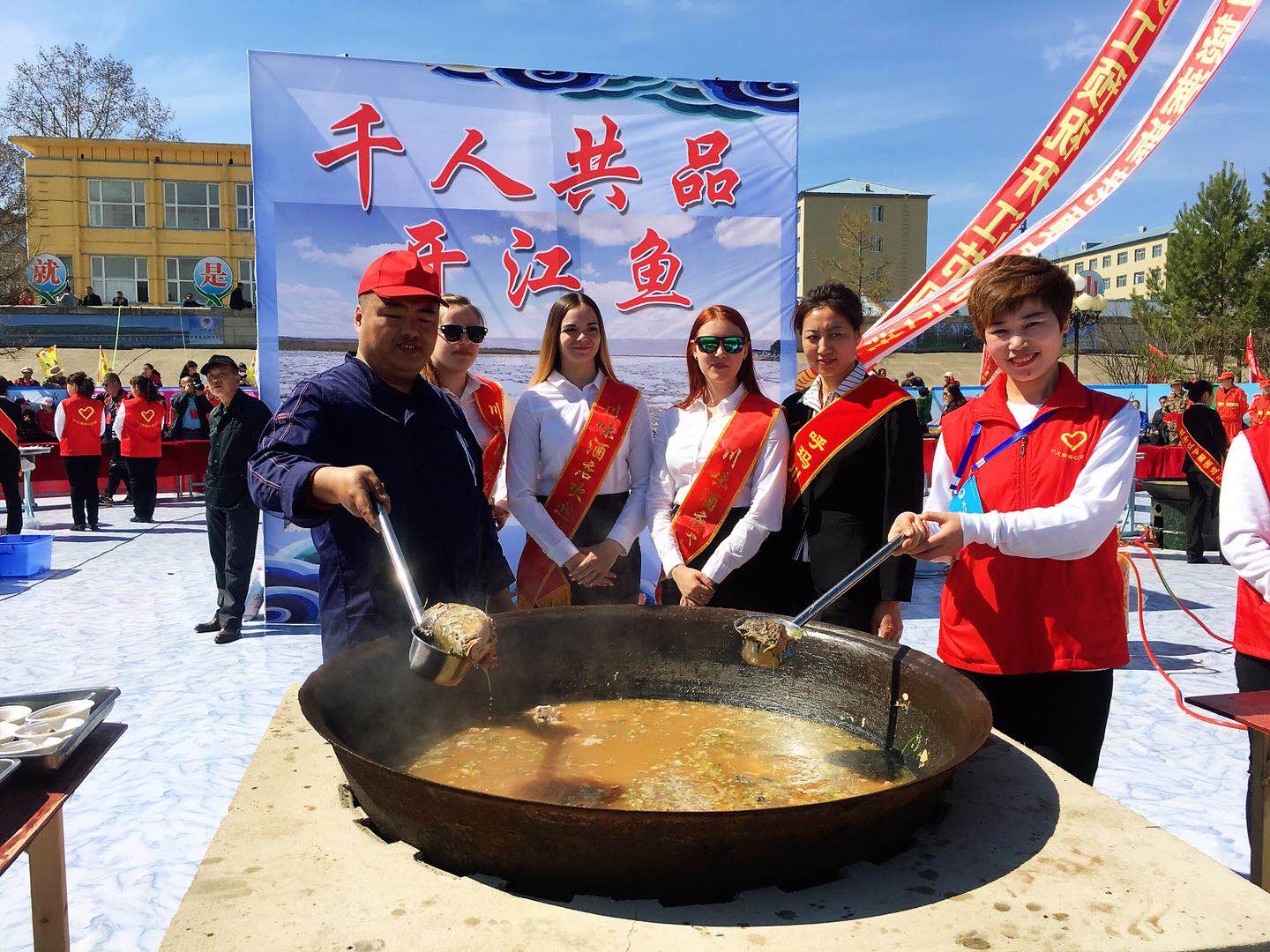 開江活動上,最大亮點之一莫過於千人品江魚。記者在現場看到,10口大鍋依次排開,一鍋鍋的開江魚經過廚師們5個小時左右的精心燉制,肉香湯鮮。這時的魚肥、肉質鮮嫩、富有彈性,前來品嘗魚湯和魚肉的市民和遊客大快朵頤,現場立即呈現一種“大口吃魚肉,大口喝魚湯”的景致。