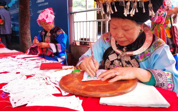 一批精选武陵山片区非物质文化遗产的苗族蜡染画作、银画作品,也与国内外艺术大师的作品同台竞拍。长沙游客秦先生以1200元价格拍走了传承人王曜的蜡染作品《凤凰于飞》。“我是一名研究本土手工技艺的工作者,看到这幅《凤凰于飞》非常喜欢。”苗族银器锻造技艺手工银画《苗族的生活百态》被广东游客以800元成交收藏。