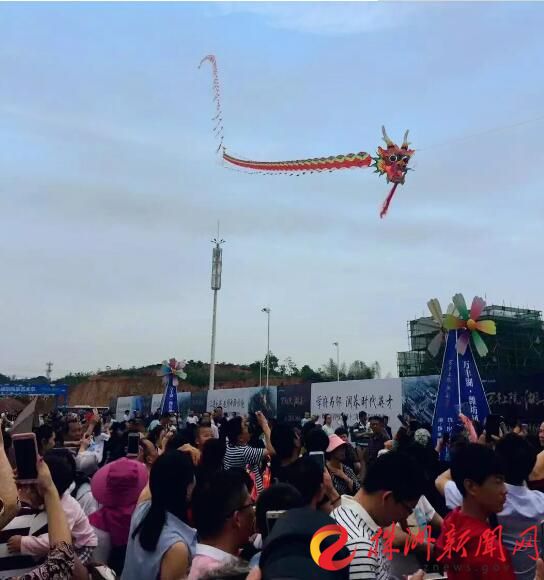 万丰湖潍坊风筝艺术节上人头攒动。