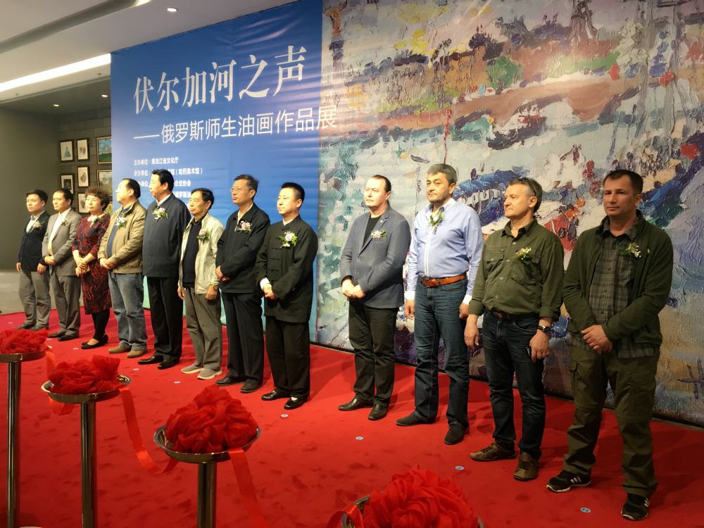 会上,黑龙江省中华炎黄文化研究会会长石树祥向此次画展赠送书法作品——“伏尔加之声”。随后,与会嘉宾为画展开幕剪彩。