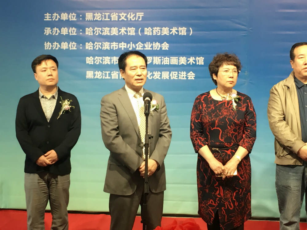 开幕式上,黑龙江省俄罗斯油画交流会会长、黑龙江省画院油画院院长陈凤跃,俄罗斯布拉戈维申斯克国立师范大学美术系教授、哲学博士、俄罗斯功勋画家杰姆琴科·弗拉基米尔,黑龙江省俄罗斯油画交流研究会副会长兼秘书长、哈师大艺术学院教授平平凡、原黑龙江省交通厅副厅长李伦分别致辞。