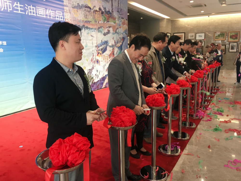 参会的各位领导为画展开幕剪彩