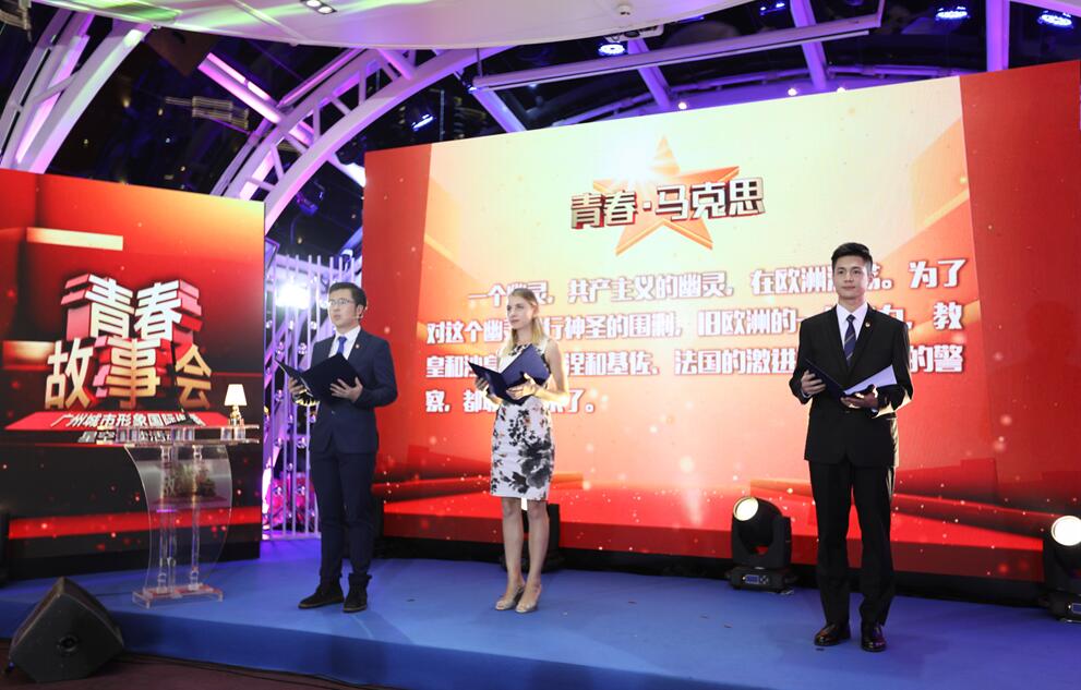 【香港商報網訊】記者朱樺 通訊員穗外宣、申卉、顧磊報道:為紀念共產主義先驅馬克思誕辰200周年,在五四青年節來臨之際,5月3日晚,由中共廣州市委宣傳部、團廣州市委,聯合廣州地區高校、廣州港集團、嶺南集團共同舉辦的“廣州城市形象國際傳播·‘青春故事會’星空誦讀暨廣州青年紀念馬克思誕辰200周年活動”在廣州舉行。來自中山大學、華南理工大學、暨南大學、廣州中醫藥大學、華南師范大學、廣東外語外貿大學、廣州大學、廣州醫科大學8所在穗高校的學者、中外青年,在遊船之上,以誦讀的形式共同重溫馬克思主義經典和習近平新時代中國特色社會主義思想精髓和內涵,分享全市各領域領軍人物、高校學科帶頭人帶來的奮鬥故事和青春感悟,激勵青年學生在新時代,發揚青年創新精神,以青春活力為國家、城市的建設事業努力奮鬥。