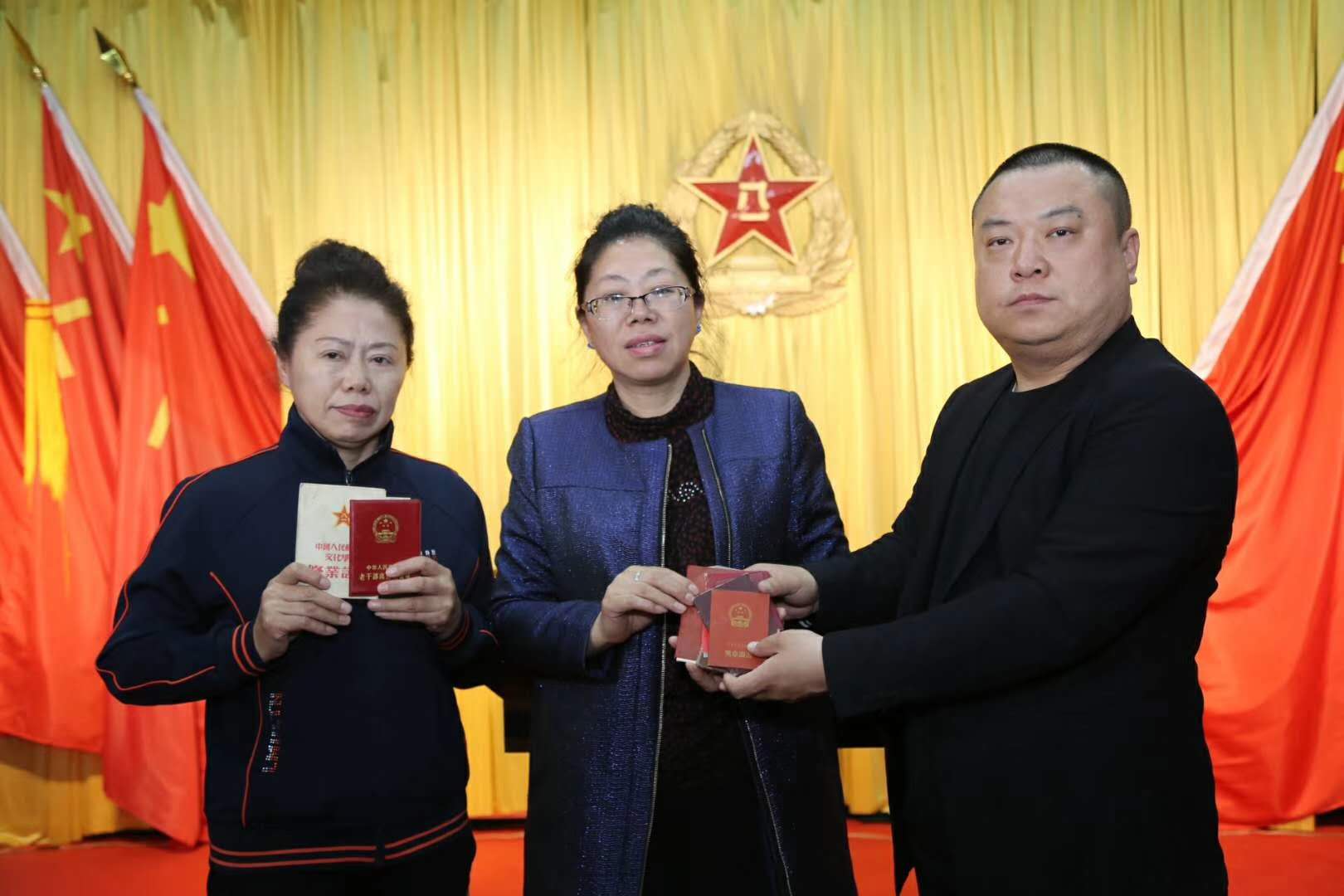 虎父无犬女。杨福荣、杨福芝衣着朴实无华、恬静内敛淡泊,但却有着一颗赤子之心。在捐赠仪式上,她们姐妹内心波澜泛起、百感交集,怀着对父亲的深深眷恋与敬仰,将一本本用红布包裹的几本证书等珍贵物品小心翼翼打开,托在掌心凝望,触摸每一本记载着父亲生前金戈铁马、血与火战场的荣誉证书,仿佛仍能感知到父亲的温度与厚重的父爱。