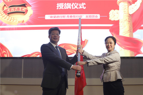 大興安嶺地委書記蘇春雨(左)向青春興安宣講團授旗