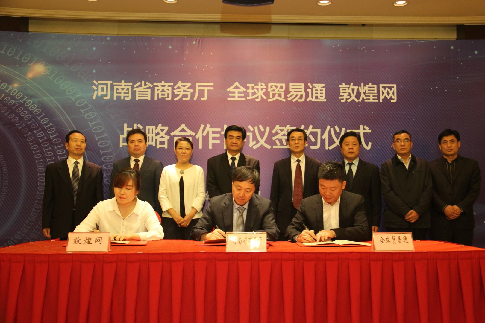 【香港商報網訊】5月9日上午,在第二屆全球跨境電子商務大會舉辦前夕,河南省商務廳就積極落實“一帶一路”戰略、助力河南產品“走出去”,分別與敦煌網、全球貿易通簽署戰略合作協議。