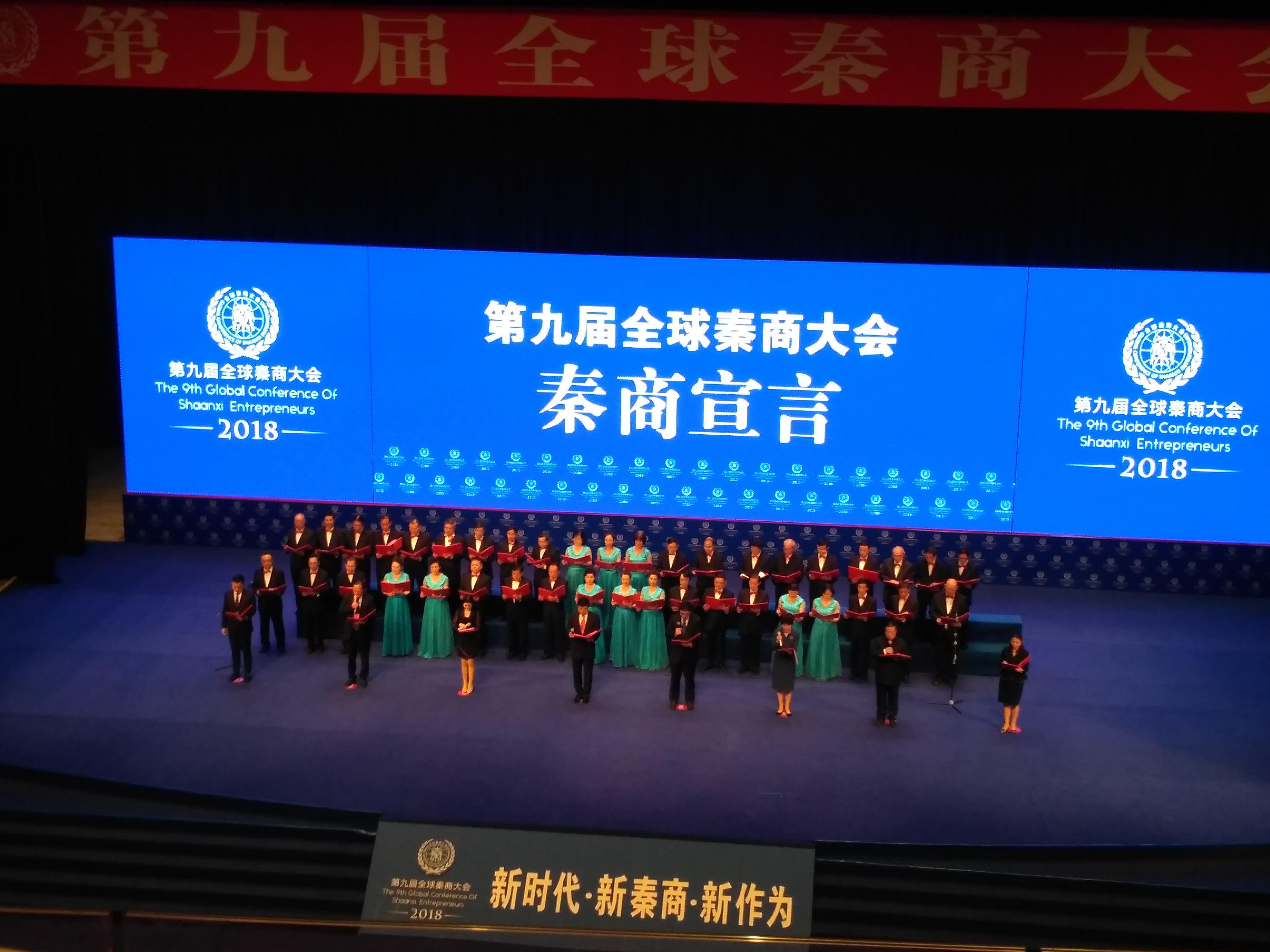 同时,大会正式发布了“厚德重道、勇毅精进、融创实干、义利报国”的新时代秦商精神。吴一坚、郭家学、颜明等知名秦商代表集体朗诵了践行新时代秦商精神的《第九届全球秦商大会秦商宣言》。