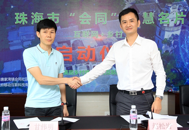 【香港商报网讯】记者陆绍龙报道:指尖在手机上轻松一点,珠海古村落会同村全景画面出现在眼前。5月11日,珠海会同村与风铃双城移动互联(深圳)科技有限公司(以下简称“风铃双城”)举行“会同智慧名片” 微信公众平台正式上线仪式,以及“会同智慧名片”项目合作交付签约仪式,标志着珠海美丽的古村落会同村通过互联网正式向全球亮相。