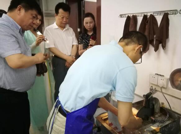 大兴安岭地委委员、宣传部部长刘洪久及调研组成员观看玉石加工技术
