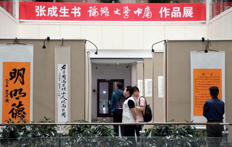 在黑龙江省图书馆内,260余幅由大行楷、小行楷组成的书法展览,吸引了众多书法爱好者观看,引得现场观者阵阵好评。张成生的书法,既有军旅书法家的剑气豪情,也有文人书法家的清隽雅逸,作者以书法为载体,逐字逐句全文书写《论语》《大学》《中庸》等国学经典,作品内容丰富,形式多样,风格多变,艺文合璧,雅俗共赏,整场展览主题鲜明、体现新时代、引领新风尚,展现出了作者日臻完善的书艺风貌,蕴藏着国学和书法艺术的精髓,展现了中华民族优秀传统文化璀璨的艺术感染力和瑰丽的艺术魅力。长期以来,作者扎根人民、扎根生活,为人民抒写、为人民抒情、为人民抒怀,一直致力于用书法作品赞颂党、赞颂新时代,积极为弘扬优秀文化,传承国学经典,建设边疆文化大省,实现文化繁荣做出了应有的贡献。