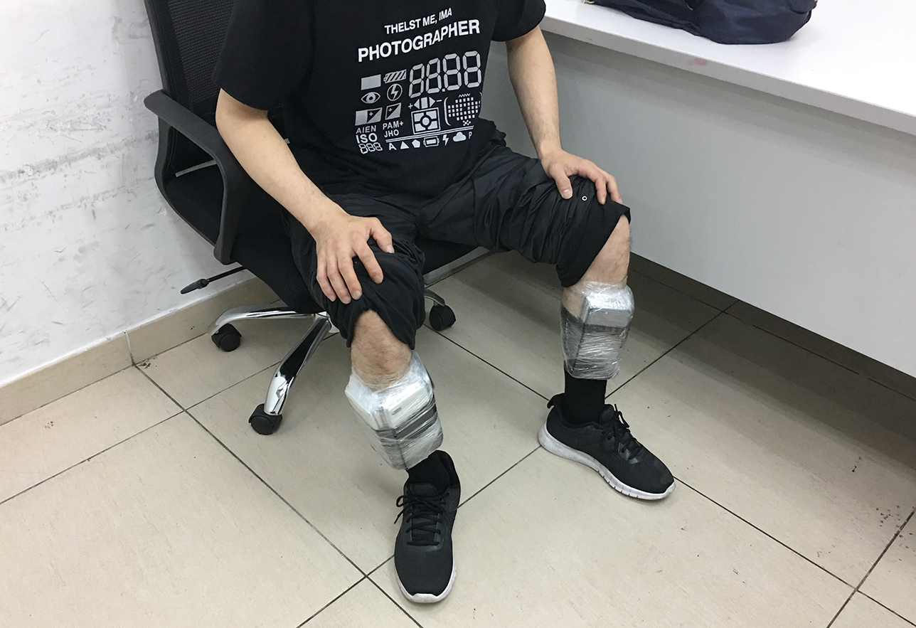通報稱,5月12日晚上10點左右,身穿黑色休閑服的香港男子朱某獨自一人,一邊用手機打著視頻電話一邊走進海關無申報通道。關員對朱某進行截查,發現其褲腿處有異常鼓起。經查,男子左右小腿處分別用透明保鮮膜綁纏7部手機。另外,男子腰腹部處用彈力束腰帶綁藏21部手機,合計35部,均為蘋果牌iPhone8,價值逾20萬元人民幣。目前,此案件正由緝私部門調查處理。