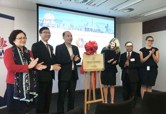 當日,在澳方代表以及中國駐悉尼總領館科技參贊盧萍領事、韓紫軒副領事的陪同下,廣東醫穀代表團見證了在新州工信部辦公大樓舉行的中澳醫療產業創新中心澳大利亞代表處揭牌儀式。中創集團總裁鄭貴輝、廣東省清潔生產協會會長黃建平、廣東省駐澳大利亞經貿代表處負責人湛安琪等參加了揭牌儀式。