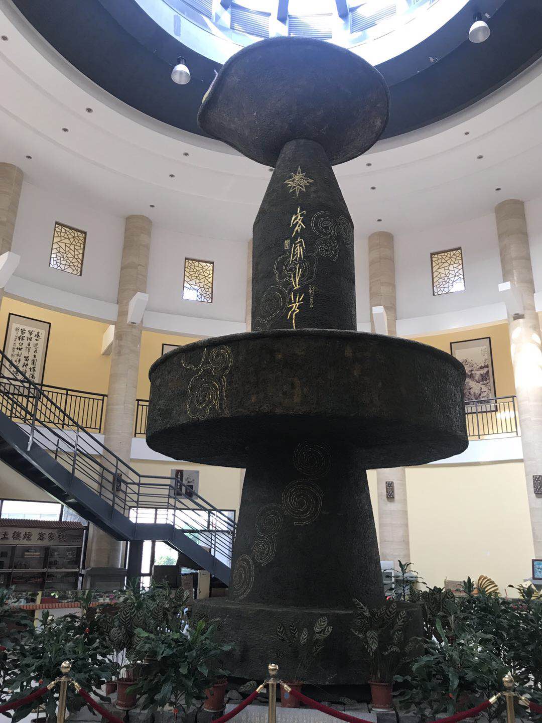 大廳天井中有兩個小型的花圃作點綴,更顯雅致。樓內的東西兩側設有兩口水井,也就是八卦圖中的陰陽二太極。令人費解的是,東西方兩口井水的水位高低不同,而且水溫也有所不同,但井水都清涼可口,取之不盡,用之不竭。全樓的設施布局既有蘇州園林的印跡,也有古希臘建築的特點。堪稱中西合璧的建築奇葩。1995年它的建築模型與作為中國南北圓形建築代表參加了美國洛杉磯世界建築展覽會,更是引起了不小的轟動。