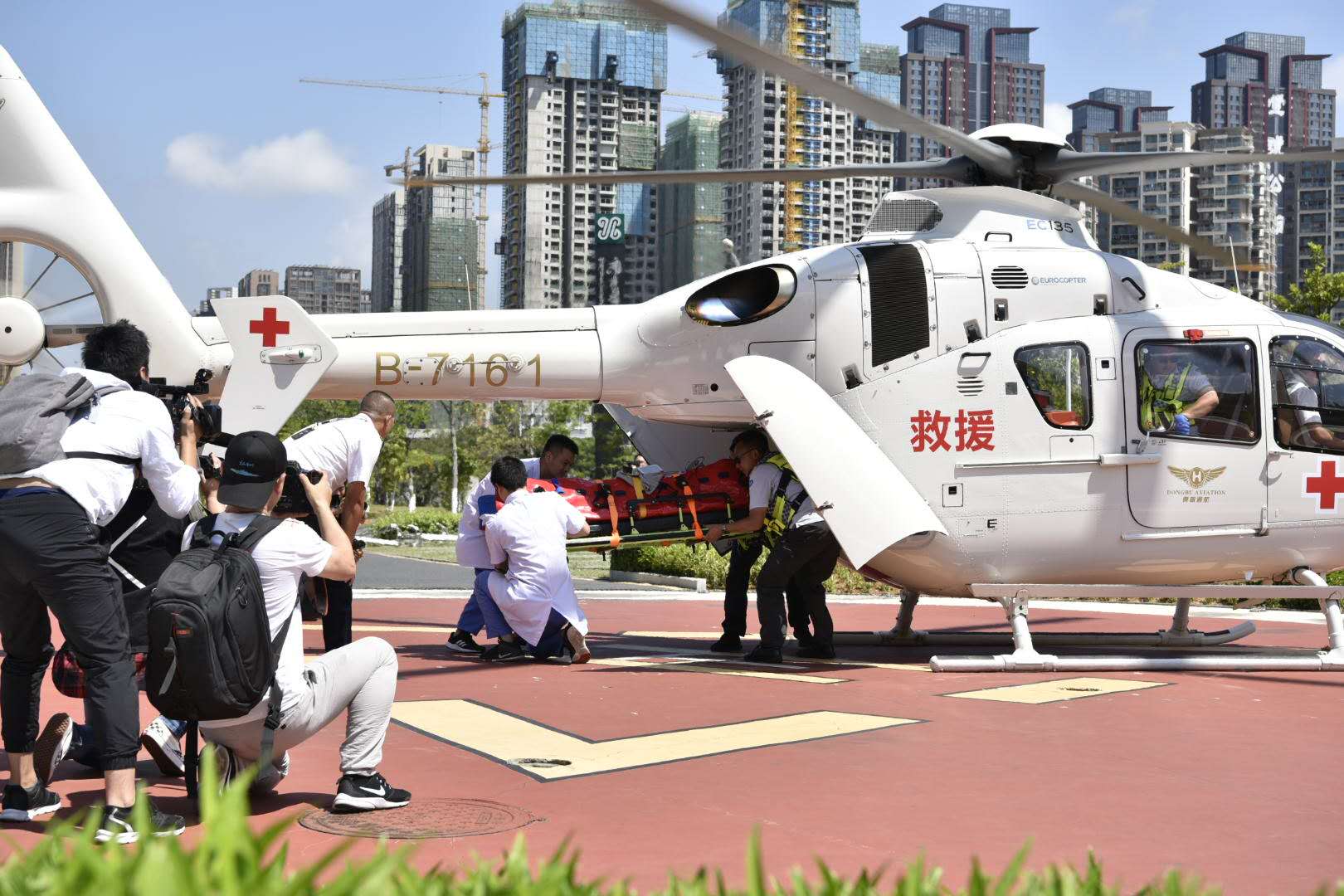 此次参加演习的南方医科大学深圳医院,是深圳首家航空救援基地医院。自2017年5月27日启动航空救援以来,该院已构建了地、空相连的120体系,形成系统、流畅的航空救援绿色通道,建成一支专业化的航空医疗救护人员队伍,迄今已进行过2例直升机航空救援,包括全国第一例直升机ECMO体外生命支持的跨地区空中转运。