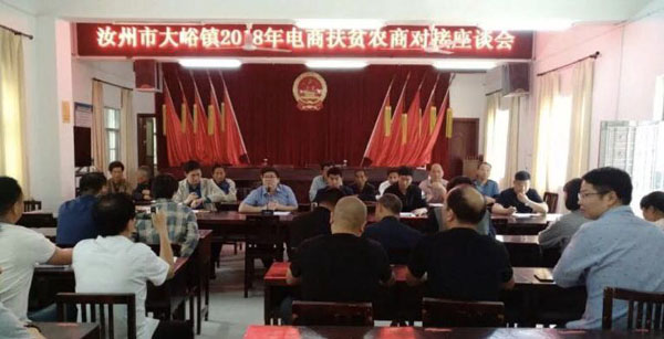 【香港商报网讯】记者王皓萍报道:5月24日上午,由汝州市商务局牵头组织的大峪镇2018年电商扶贫农商对接座谈会在大峪镇政府召开。汝州市扶贫办、汝州市商务局、大峪镇政府、青山后、十岭村村两委班子和驻村第一书记、电商企业代表以及市区12家大型商超负责人参加。