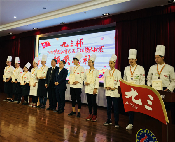 据了解,九三集团全程冠名本次活动,九三集团哈尔滨惠康食品有限公司营销事业部总经理曹成军出席活动并发表讲话。与黑龙江省龙菜产业协会副会长任家常、中国烹饪大师栾瑞滨一同为本次比赛的获奖选手颁奖。赛事设特金奖、金奖、银奖,技术全面的选手可获得“少年工匠荣誉称号”。