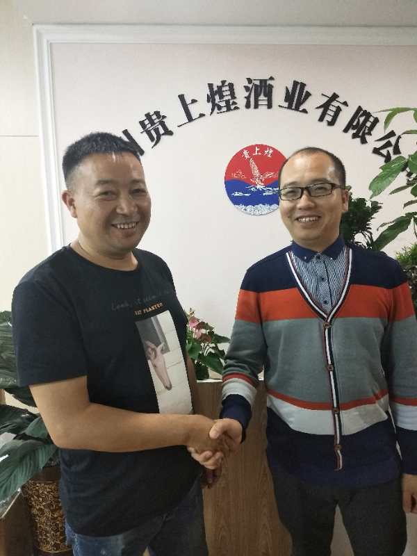 云商汇创始人童继才(左)和贵州贵上煌酒业公司法定代表人、董事长童吉恩在签约仪式上