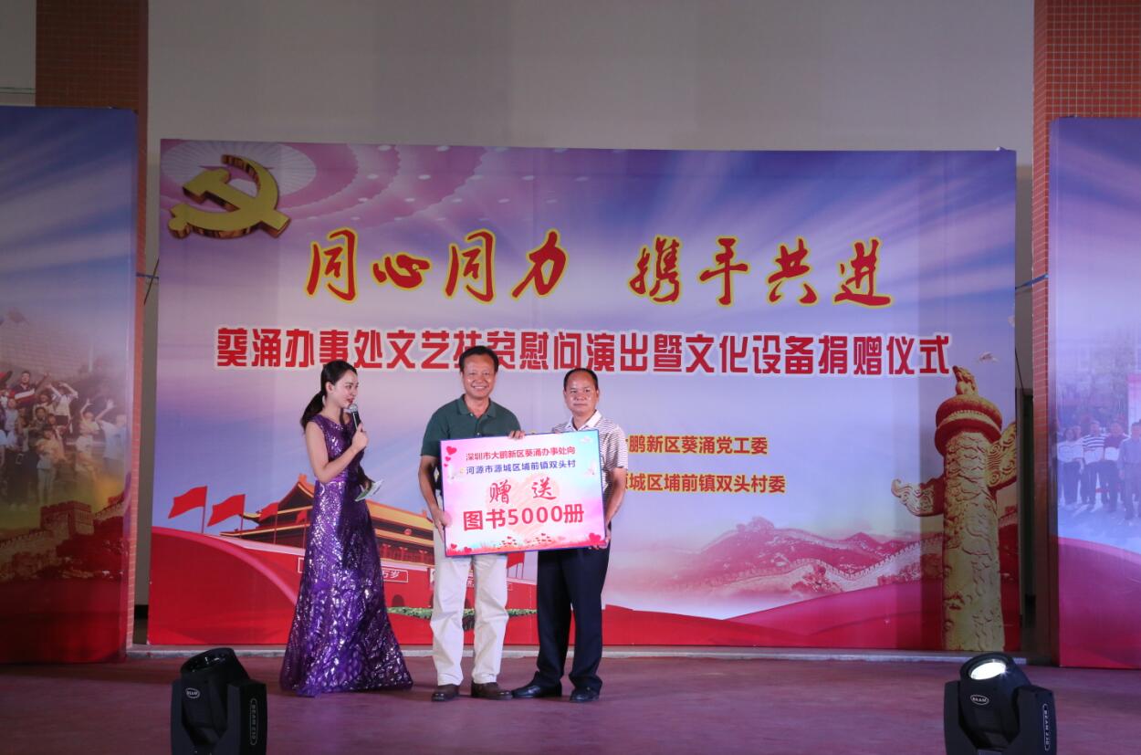 【香港商报网讯】记者朱开芝、通讯员刘美燕报道:“火红五月花果香,文化扶贫情谊长”。日前,深圳市大鹏新区葵涌办事处组织葵涌文艺队伍,赴对口扶贫河源市源城区埔前镇双头村,给村民送上一台主题为“同心同力,携手共进”的文艺节目,用文化交流的正能量,激发贫困地区村民科学致富的活力。
