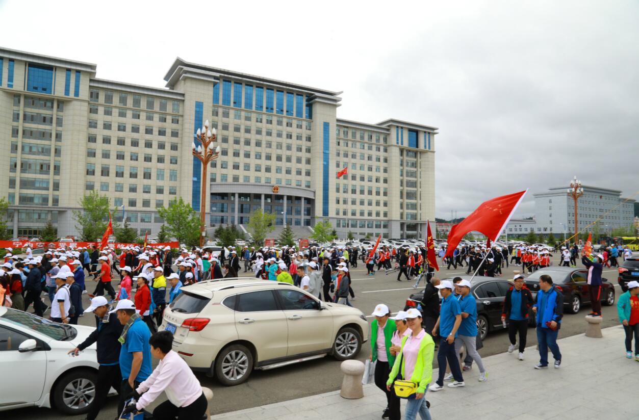 “筑梦新时代、健康伴我行”大兴安岭地区(加格达奇)职工徒步大赛开幕式现场。
