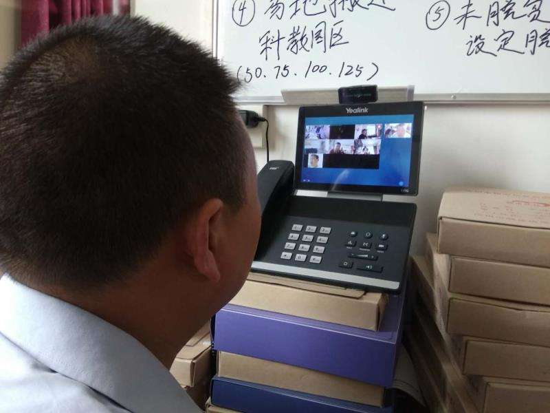 6月11日下午,汝州市紀委駐陵頭鎮申坡村第一書記、網絡第一黨支部委員王亞賓使用視頻電話組織召開了網絡第一黨支部會,就扶貧應知應會知識進行了集體學習。參加該黨支部會的黨支部成員就“六改一增”項目進行了討論學習、經驗交流。記者發現,該視頻電話具備多種功能,扶貧知識學習、會議精神傳達、上級監督查崗等,也可以同時聯系多個黨支部成員進行會議學習和精神傳達,各分會場學習場面可同時在顯示屏上顯示。